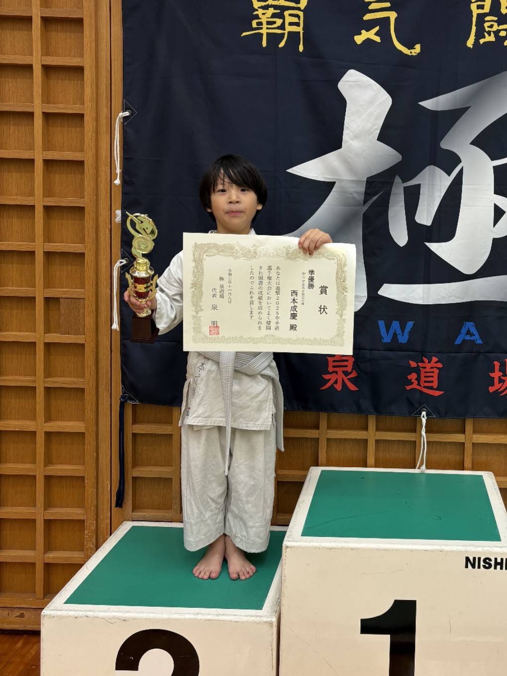 進撃2025お知らせ・大会結果 2025.11.10日時:2025年11月9日(日)会場:大阪市立中央体育館(柔道場)主催:極 泉道場年長男女混合の部 初心クラス 準優勝 西本成慶小学三年男子の部 初級クラス 優勝 尾﨑結仁小学四年女子の部 初級クラス 優勝 岡山彩夢小学五年女子の部 初級クラス 優勝 中村亜音